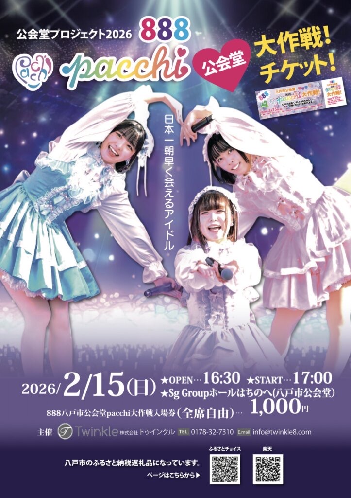 2月15日は Pacchiの八戸公会堂LIVEです!